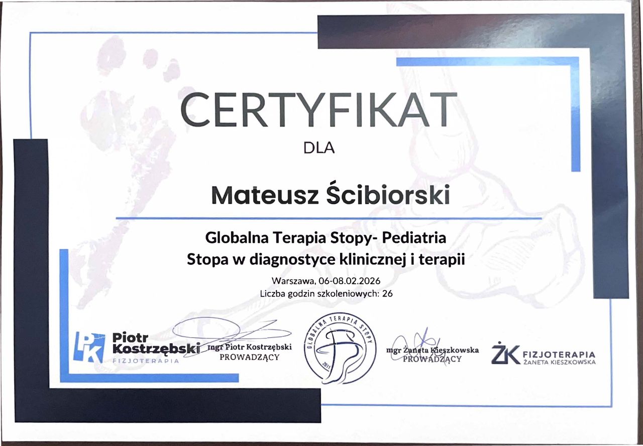 - Certyfikat Globalna Terapia Stopy - Pediatria, stopa w diagnostyce klinicznej i terapii